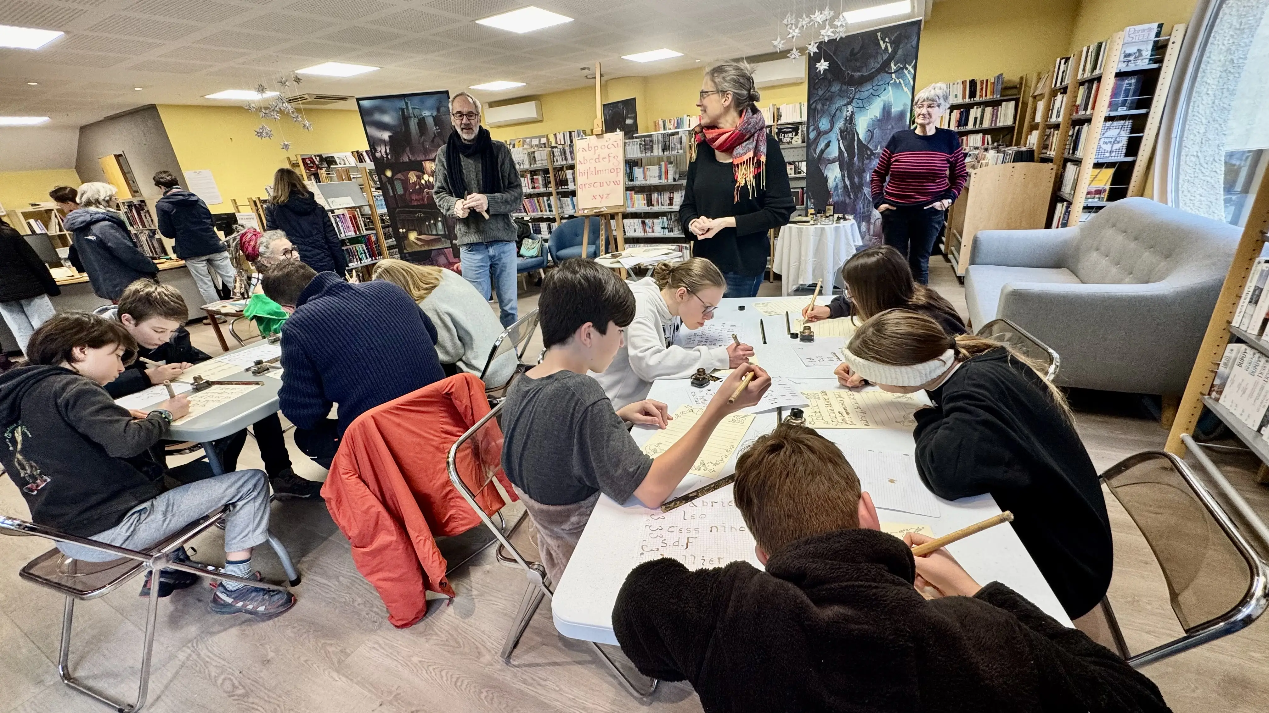 Ce jeudi , la bibliothèque municipale de Villard-de-Lans a accueilli un atelier de calligraphie médiévale dans le cadre de son exposition « Lux in ténèbris ». Animé par Anouk, de l’association Animalices, l’événement a permis à une trentaine de participants de découvrir la typographie Caroline, emblématique du Moyen Âge.